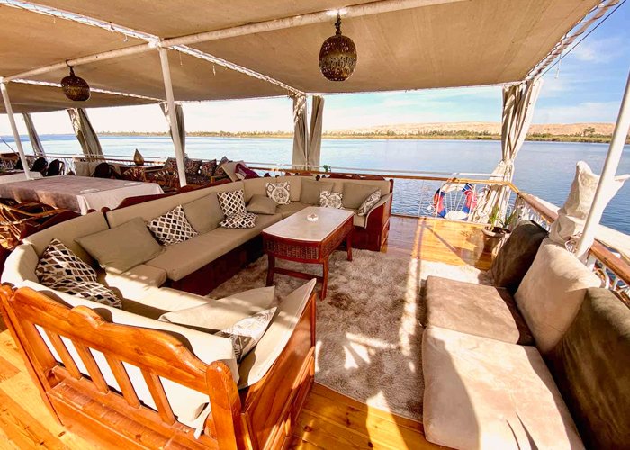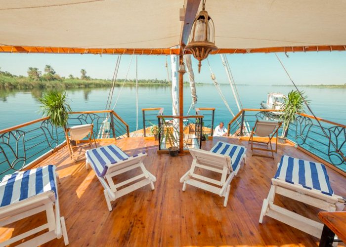 Sonesta Princesses Golden Nile Cruise has been offering unparalleled vacations on a Nile cruise since February 2009. The 7 Nights Luxor-Aswan cruise brings you back to a simpler and more beautiful time on the Nile. There are 5 cabins, 2 suites, an oriental outdoor jacuzzi, a spacious sundeck, and a modern standard room. Each house offers a private bathroom, climate control, hair dryer, minibar, safety deposit box, plasma TV, movie channels, and complimentary breakfast, lunch, and dinner. All units have private patios—Daily Nile River cruises from ancient Egyptian ruins.