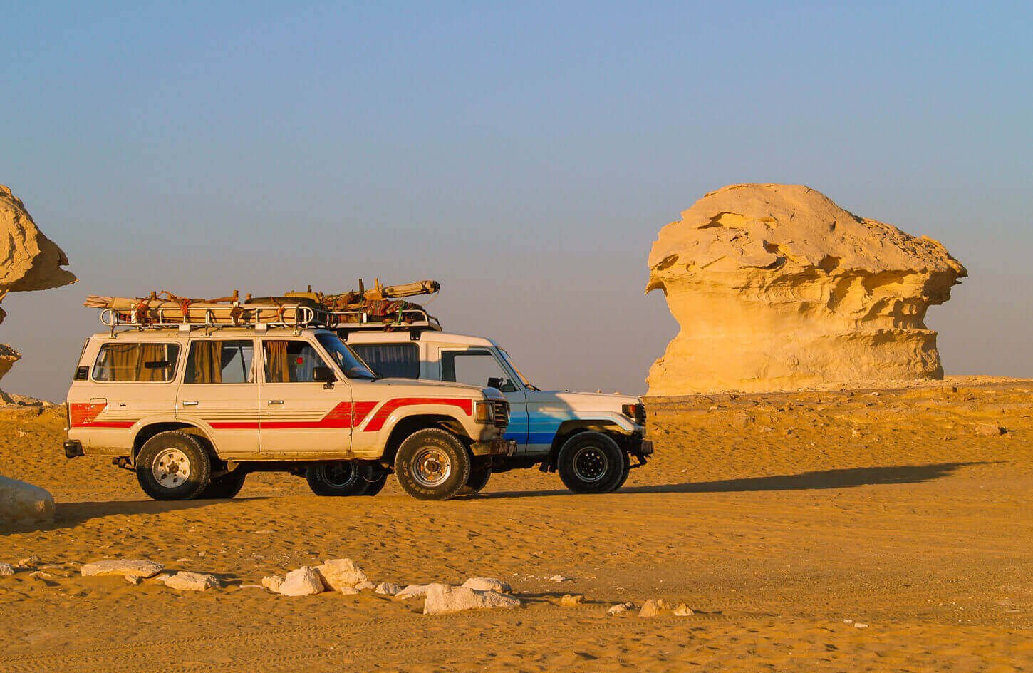 Marvel at the glistening quartz crystals of Crystal Mountain and the unique rock formations of Agabat Valley. Witness the surreal beauty of the White Desert National Park, with its iconic giant mushrooms and pebbles.