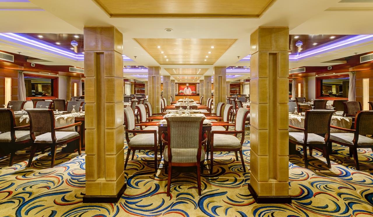 Indulge in a remarkable culinary experience while cruising on the Esmeralda Nile Cruise. The onboard restaurant offers a variety of gourmet meals, including traditional Egyptian dishes and international favorites. Breakfast, lunch, and dinner are served in a sophisticated dining area, allowing you to enjoy your meals while taking in panoramic views of the river. Additionally, the bar offers refreshing drinks and cocktails, making it a great spot to unwind while admiring the beauty of the Nile.
