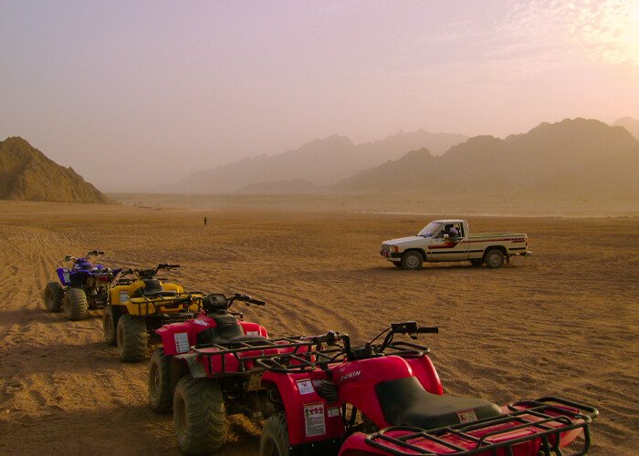 You will be picked up from Safaga Port to start your day in the desert, and you will drive your quad bike in the eastern desert of Egypt to the Bedouin village, where you will spend some time sharing Bedouin life, traditions, and customs. With lovely Bedouin tea, hookah smoking, and a delicious dinner typical of a barbecue party, it's an excellent tour in the enchanting atmosphere of the oriental Egyptian desert and back and transfer to Safaga Port.